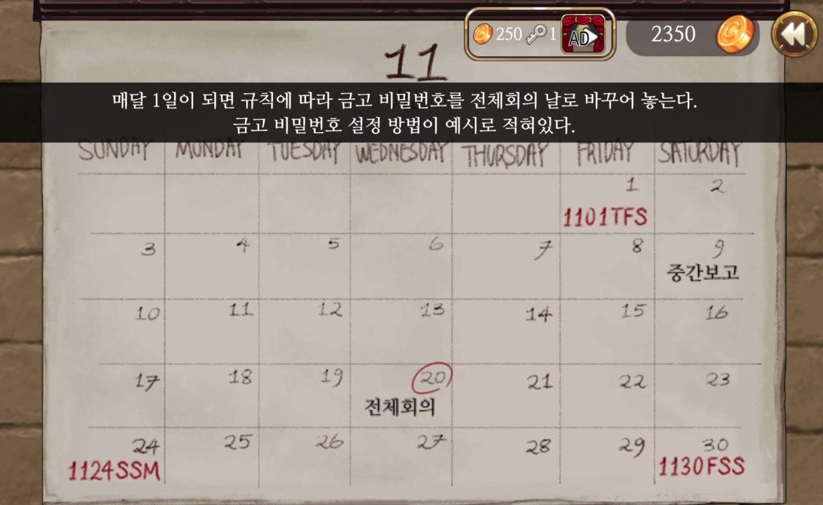 - 달력을 참고하여 금고 비밀번호를 입력한다