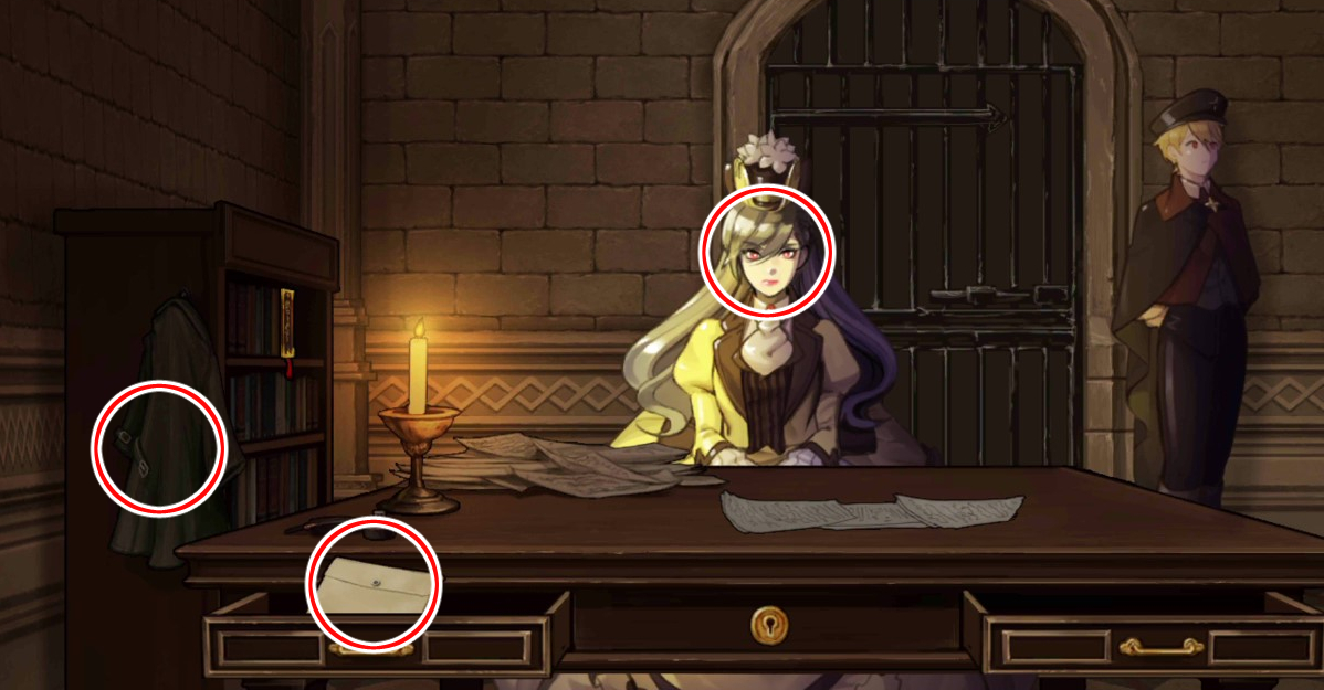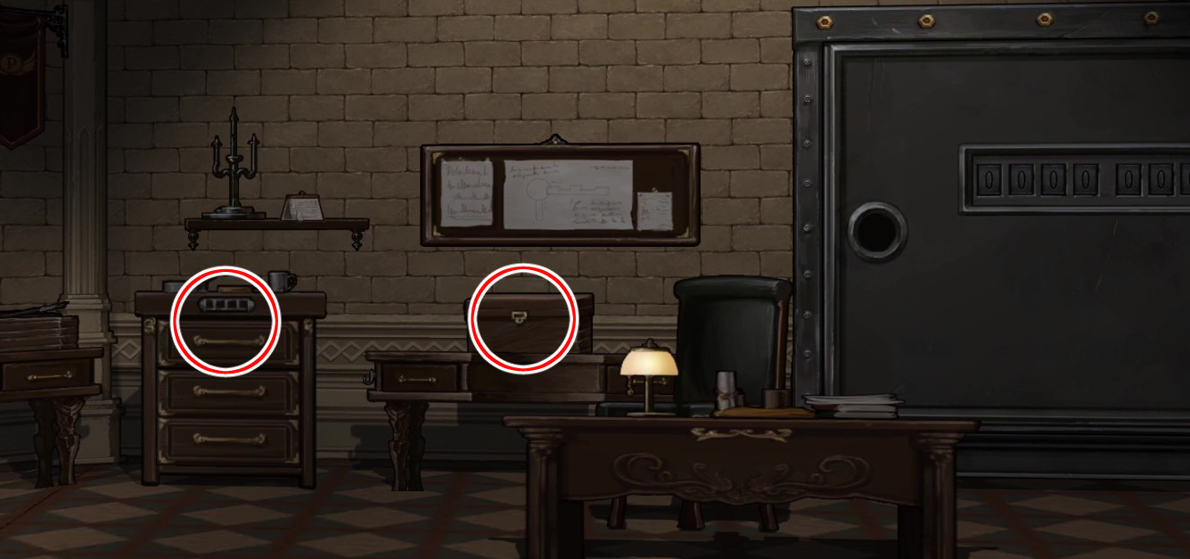 - 열쇠를 책상에 사용해 왼쪽 서랍의 서류 조사