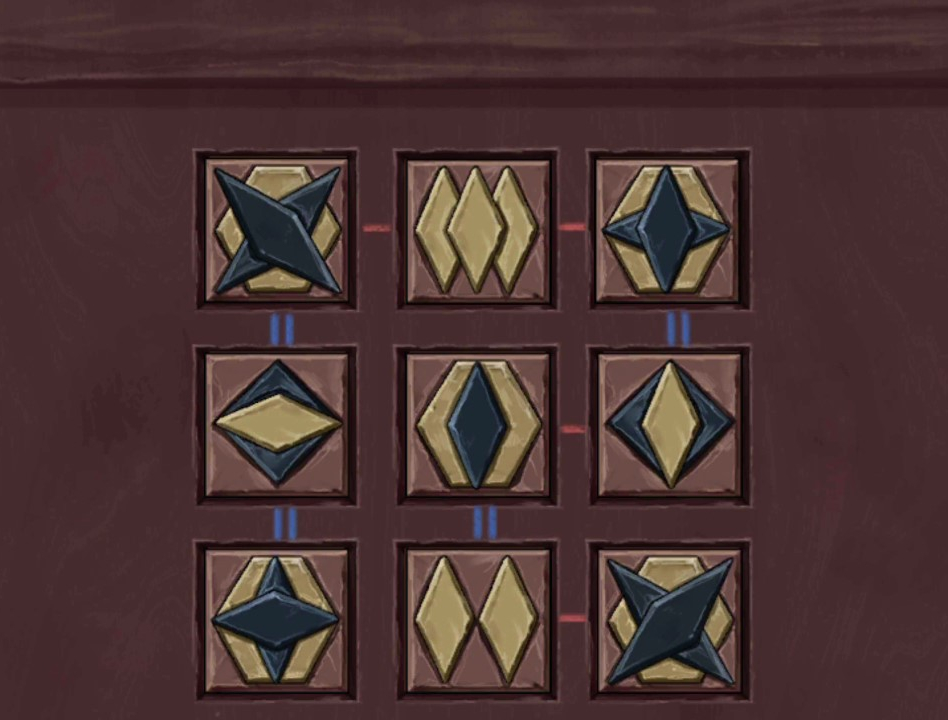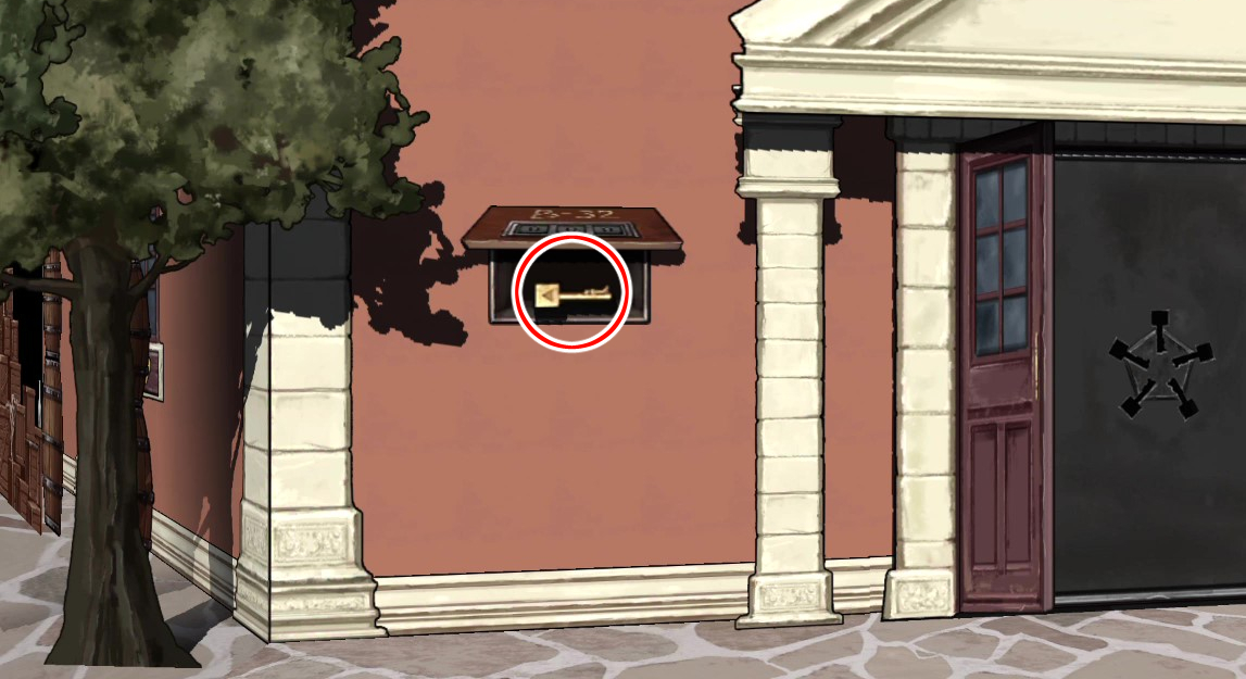 - 선을 따라 해당하는 숫자를 정문 옆에 입력해 잠금을 해제 → 세모모양 열쇠 획득