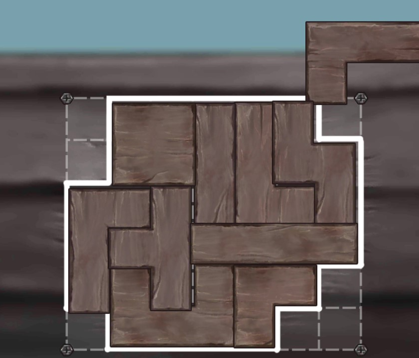 - 숲에 떨어진 다리조각 6개를 획득해 무너진 다리에 맞춘다