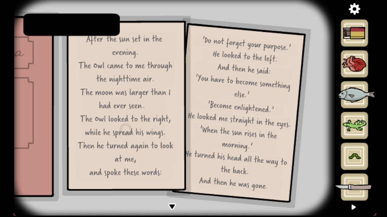 - 괘종시계 위로 이동한 부엉이를 조사하면 얼굴의 방향을 돌릴 수 있다