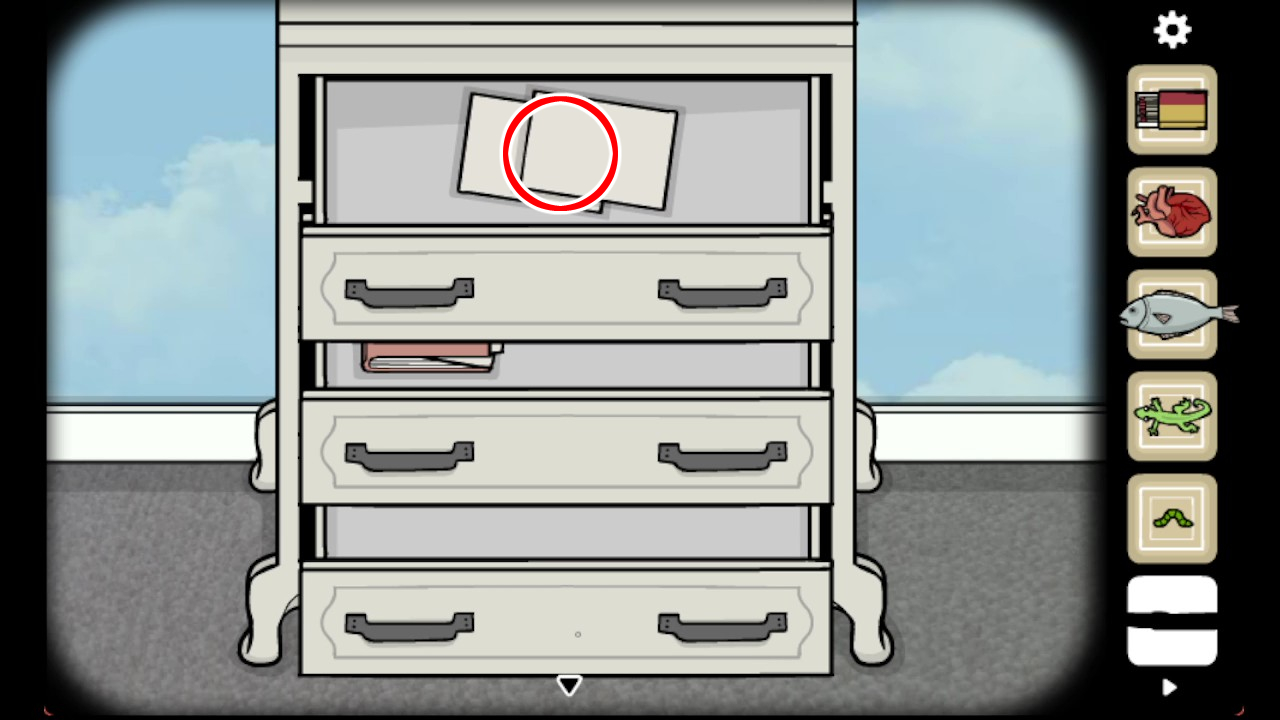 - 흰 서랍이 있는 곳에서 종이비행기가 바닥에 떨어지면 조사하여 깃털 획득