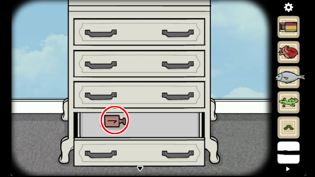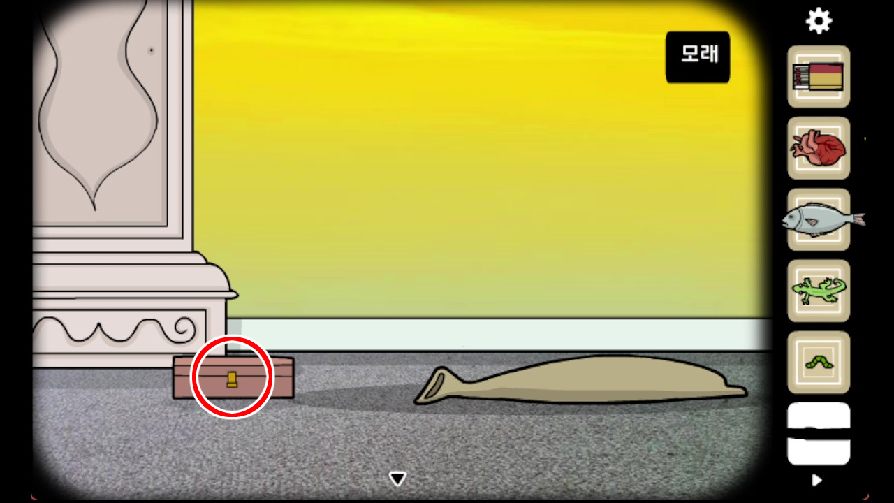 - 주머니를 조사해 모래, 저울을 획득하고 상자를 꺼낸다