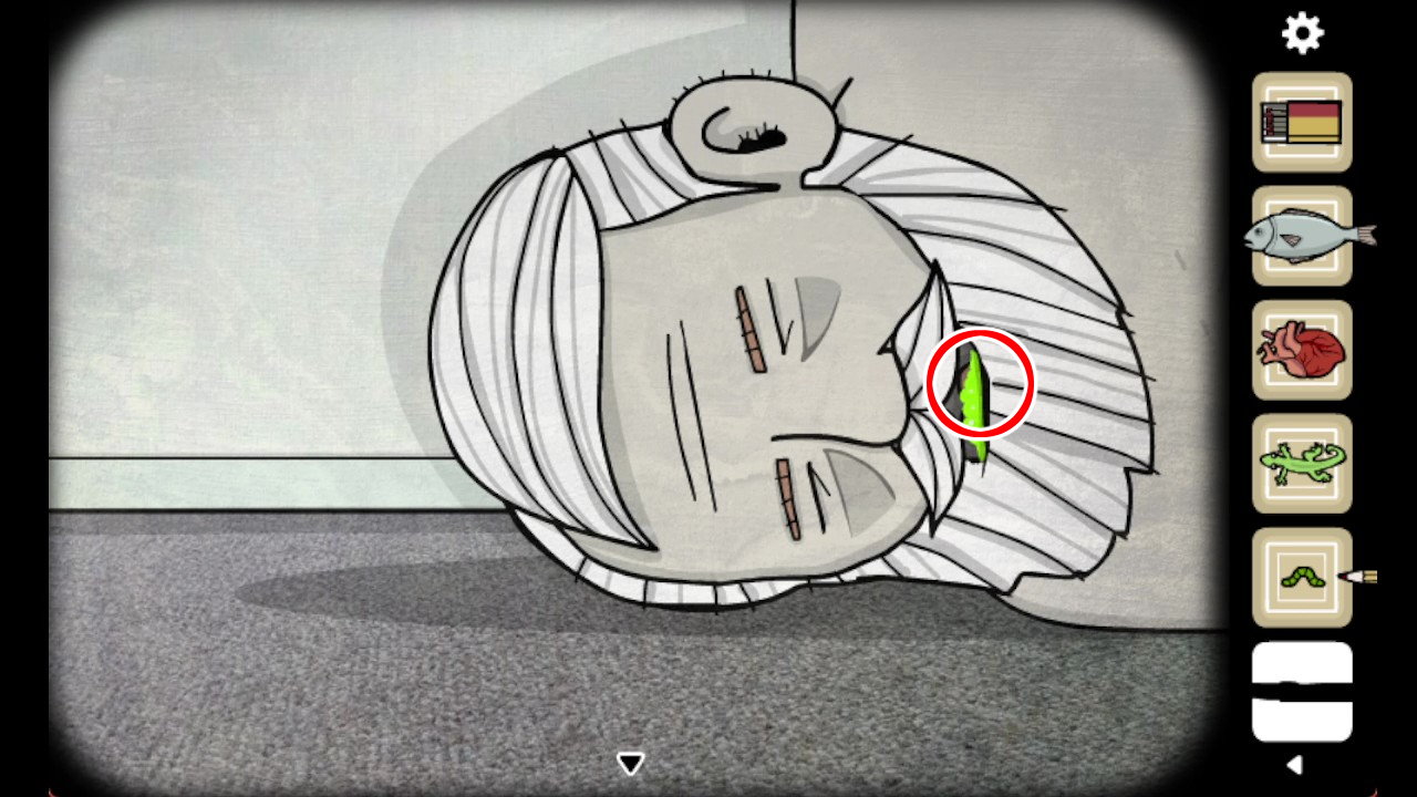 - 새우 껍질을 열어 시신의 입 안 액체에 병 사용 → 묘약 획득
