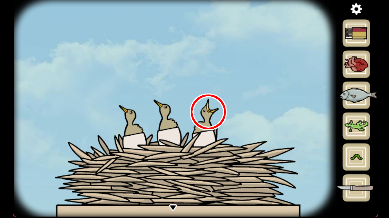 - 둥지 위 새에게 지렁이, 물고기, 도마뱀, 심장을 전부 먹인다