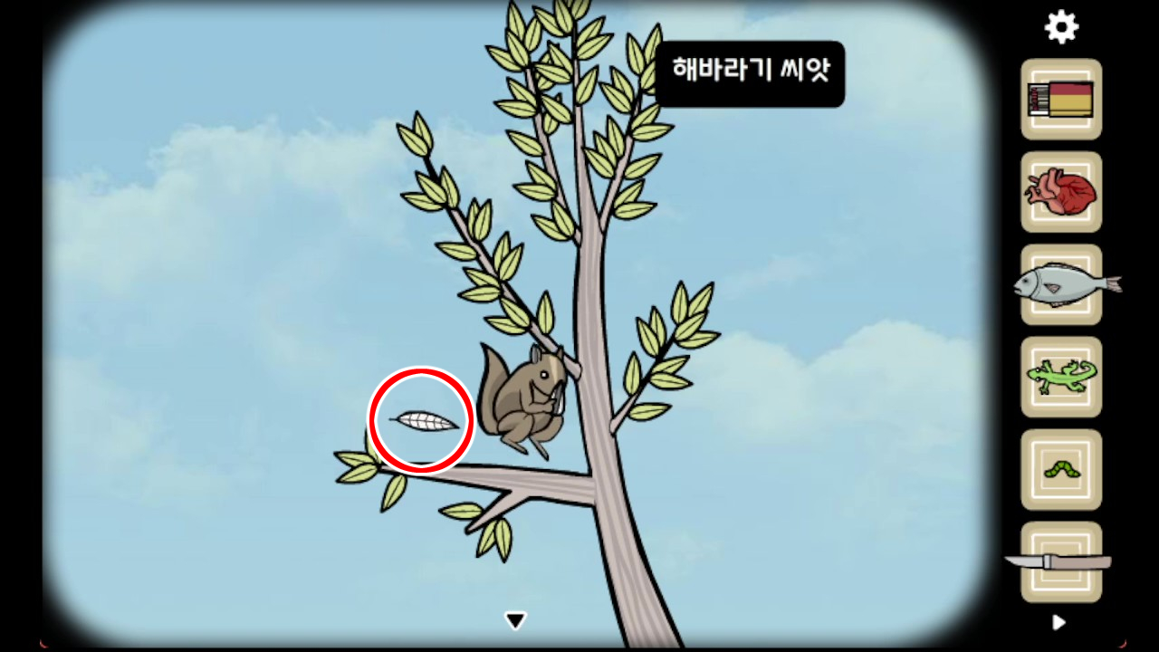 - 나무 위 다람쥐에게 해바라기 씨를 주고 깃털 획득