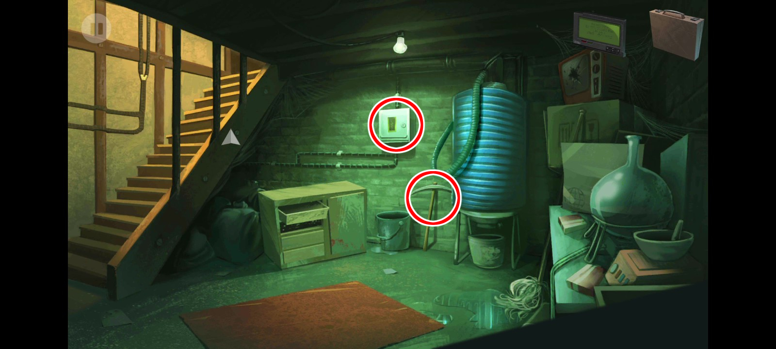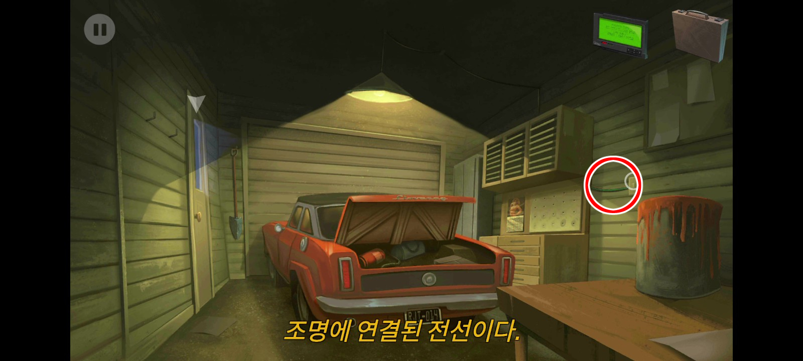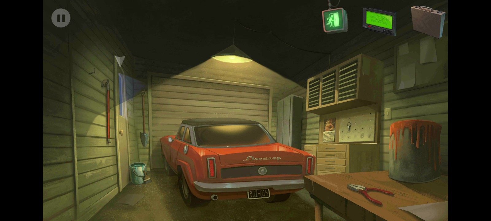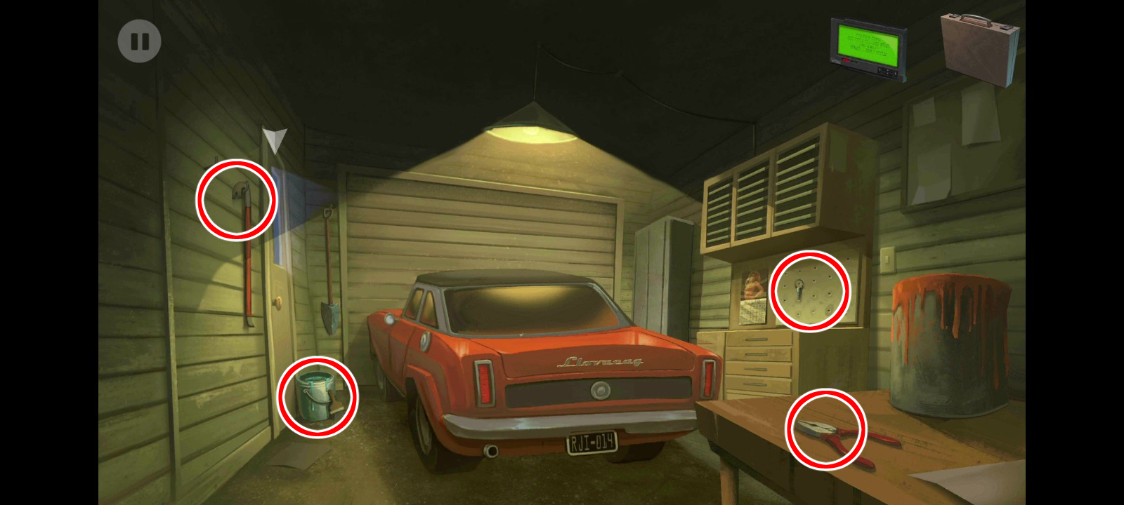 - 차고에 들어가 펜치, 쇠지랫대, 페인트, 열쇠다발 획득